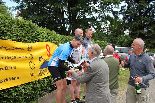 Unsere Sportler Christin Schreil, Olaf Reich, Torsten Groß und Steffen Semmler knüpften an Ihre guten Leistungen des Vorjahrs an und soviel sei vorweggenommen verbesserten ihr Zeiten aus dem Vorjahr allesamt. Unsere Christin belegt in der AK "Seniorenbikerin 1" einen hervorragenden 2. Platz mit einer Zeit von 30:57, legte Sie ein hervorragendes Ergebnis hin. Auch Olaf und Torsten gestartet im Mittelfeld konnten beide auch bedingt durch eine gute und konzentrierte Vorbereitung sehr gute Ergebnisse einfahren. Olaf belegt einen Super 2. Platz in der AK "Seniorenbiker 2" mit einer Zeit 24:37 hierfür bekam er noch 6 Cuppunkte für den Rennsteig-Dolmar-Cup angerechnet. Auch Torsten kam mit einer Zeit von 27:28 durchs Ziel, dabei belegte er einen sehr guten 13. Platz AK "Seniorenbiker 2" und bestätigte hiermit den Aufwärtstrend seiner Formkurve. Auch Steffen zwar mit einer etwas unglücklichen Startnummer 5 und einem undankbaren 4. Platz AK "Seniorenbiker 2" am Ende mit einer Zeit 25:37 zufrieden und Freude sich riesig mit seinen Vereinsmitgliedern über das erreichte gesamt Ergebnis.