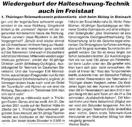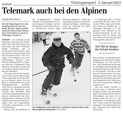 Der 1. Thüringer Telemarkverein e.V. wurde am 31. Dezember 2001 auf der Berliner Hütte im Zillertal gegründet. Die Mitglieder sind zum Großteil aus dem thüringer Raum. Unser Verein möchte zur Wiederbelebung der Telemarktechnik beitragen, einer neuen Herausforderung und natürlich auch neuen Spaß im Schnee der großen Bergwelt weltweit.